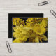 Esta encantadora tarjeta de intercambio de artistas presenta una fotografía de clausura de daffodils dorados amarillos y flores de forsythia para formar una composición artística, casi abstracta.