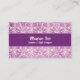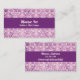 Vintage elegante patrón de damasco magenta púrpura personalizada con tipografía rosa suave, acentuada con una cinta morada oscura como fondo para el contraste. Fuente completa y redonda para un diseño retro y un poco más divertido y moderno, creado para la marca de diseño que ama la elegancia de los patrones damascados. Actualice la información de su negocio, la línea de etiquetas y la información de contacto.