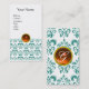 Tarjeta De Visita DAMASK naranja de la gema AZUL MONOGRAM