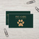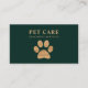 Tarjeta De Visita Dark Green Modern Luxury Golden Paw Pet Grooming