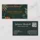 Introduce your brand with sophistication using this Dark Mode Tropical Business Card! This striking design features a moody, deep forest green/teal background contrasted with rich, painted tropical foliage and warm gold accents. It is the perfect choice for high-end Wellness Centers, Luxury Spas, Holistic Therapists, and Professional Health Coaches seeking a dark, elegant aesthetic. This card is simple and quick to customize on the Zazzle platform. All text fields—name, job, contact info, and social media links—can be easily personalized to reflect your unique details. The bold, clean typography and white QR code provide a modern and authoritative look. Elevate your professional image—customize this sleek design today!