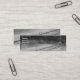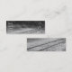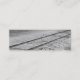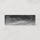 Una foto negra y blanca de un apartadero del carril es el fondo de esta tarjeta de visita flaca.