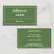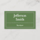 Este diseño elegante, limpio y sencillo de las tarjetas de visita tiene un fondo verde, un borde de tres líneas y una fila de formas de diamante. Podría ser utilizado por un profesional como un abogado, un abogado, un abogado o un abogado. El nombre, la profesión y los datos de contacto pueden ser personalizados.