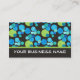 Una tarjeta de visita brillante y audaz para muchos tipos de negocios, con un patrón abstracto de "Blue Moons" en azul brillante y verde neón sobre un fondo negro; de un diseño de collage de papel pintado a mano por Judy Adamson. Personalizable completo y fácil.