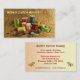 Esta tarjeta de visita hace publicidad de un negocio de costura de encargo que se especialice en bodas, el vestido que hace, alteraciones, la reparación y la decoración casera. El diseño colorido de la bella arte exhibe las herramientas de la costurera. Carretes brillantes del hilo en colores del arco iris de verde, de rojo, de rosado, la turquesa, el amarillo, el oro, el azul y el soporte anaranjado al lado de una cinta métrica, de un dedal, de botones y de pernos. Todos se fijan en una imagen de un fondo marrón del modelo de la arpillera. El dorso tiene todo el texto pertinente que se puede modificar para requisitos particulares para adaptarse a sus necesidades.