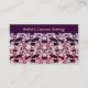 Esta tarjeta de visita anuncia un negocio de costura de personalizados especializado en bodas, confección de vestidos, reformas, reparación y decoración de la casa. El diseño colorido de arte fino presenta un intrincado patrón abstracto de pequeños pliegues de tela de satén giratoria en tonos de vino y rosa. El reverso tiene todo el texto pertinente que se puede personalizar según tus necesidades.