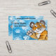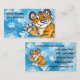 ¡Un cachorro de tigre que agita saluda sus nuevos contactos comerciales y clientes con una sonrisa! Este dibujo animado, características del diseño de la acuarela un modelo azul del catprint. Modifique el frente y la parte posterior para requisitos particulares con su información de compañía.