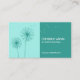 El viento sopla semillas de diente de león a lo largo de esta tarjeta unificando los paneles de texto de color turquesa claro y profundo. Las semillas de león continúan en su camino en la parte posterior de la tarjeta sobre su información de contacto y/o compañía.