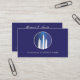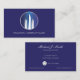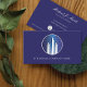 Una tarjeta de visita única, ideal para empresas financieras, entidades bancarias o empresas de inversión, esta tarjeta presenta un diseño innovador de rascacielos futuristas con un fondo azul medianoche. También adecuado para empresas inmobiliarias comerciales.