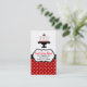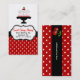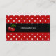 Tarjeta de visita elegante de la panadería hecha en rojo, negro, y blanco, con los lunares rojos y blancos, al el frente inferior y cubrir la parte posterior de la tarjeta. Los gráficos dulces de una torta del lunar, con las cerezas en el top, adornan la parte delantera superior y un marco de texto decorativo blanco y negro está en el centro. Las cerezas rojas lindas adornan la banda negra del texto, en la parte trasera de la tarjeta. Todo el frente y parte posterior del texto está listos para personalizar para su negocio de la hornada.