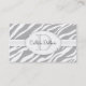 Un modelo caprichoso del estampado de zebra en gris pálido y blanco hace que esta tarjeta de visita un ultra elegante - perfecciona para una tarjeta de visita personal así como un boutique, estilista o cualquier negocio. ¡Personalizar con su propio texto para una tarjeta perfectamente personalizada que asirá la atención! {{Haga clic el botón anaranjado del "PERSONALIZAR" PARA CAMBIAR EL COLOR DE FONDO, el COLOR de la FUENTE y la TIPOGRAFÍA}}