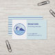 Una tarjeta de visita con un logotipo de arte de línea moderna azul de un nadador con gafas y gorro de natación nadando entre las olas. Perfecto para instructores de natación y salvavidas. Personalice fácilmente con su información en las plantillas de texto proporcionadas.