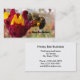 Esta tarjeta de visita ofrece una fotografía de una abeja de la miel que recoge el néctar y el polen de una flor rosada y amarilla.