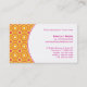 Una rejilla de los círculos concéntricos de oro del naranja, rosados y blancos hace un modelo de arresto en esta tarjeta de visita que esté segura de conseguir la atención. Un amarillo anaranjado, forma circular levemente transparente lleva a cabo el nombre comercial y la preferencia principal del contacto. El revés revela el modelo a la izquierda para mostrar apagado toda la información de contacto contra blanco a la derecha. Una manera creativa de promover un márketing y un negocio de las comunicaciones, una consulta, interiorista o cualquier empleo creativo. Disponible en colores alternos con los productos a juego.