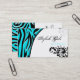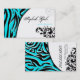 Promueva su cadera y refresque el negocio del planificador del fiesta con este aguamarina azul, estampado de zebra texturizado áspero moderno y elegante negro, y blanco, tarjeta floral, y de los diamantes intrépida de visita. Esta tarjeta de visita ofrece un fondo áspero, texturizado de la impresión de la cebra (animal) con una muestra curvada adornada con los diamantes magníficos y remolinos florales intrépidos, descarados. Esta tarjeta de visita intrépida, moderna, y elegante es también un gran partido para los diseñadores de moda, la industria musical, los cantantes, los músicos, los agentes inmobiliarios, los diseñadores del bolso, las tiendas de ropa, la industria del ocio, los bailarines, las actrices, los artistas de maquillaje, las tiendas de joyería, los joyeros, las ventas del diamante, la venta al por menor, los cosmetologists, los modelos, las agencias, los estudios de la danza, los planificadores del fiesta, los planificadores de eventos, y más. Los diseños del PAM ©2011.