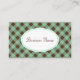Esta tarjeta profesional está decorada con un patrón de gingham verde menta y marrón chocolate. Personalizar esta tarjeta de visita para satisfacer sus necesidades. Utilice esta tarjeta de visita para una pequeña empresa, panadería, dulces, chocolates, productos gourmet. heladería, hostería, bed and breakfast, guardería, peluquería, cosmetóloga, florista, citas, etc.El diseño es de arte original.