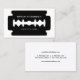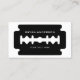 Tarjeta de visita de la peluquería de caballeros con imagen negra de la hoja de afeitar.