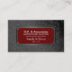 Los diseños 2011 del PAM de Copyright. Represéntese y su bufete de abogados con esta tarjeta de visita roja y negra profesional, elegante de la ley para un abogado, un juez, un abogado, una secretaria legal, un notario, un abogado, un abogado, y el resto de los servicios jurídicos. Esta plantilla de la tarjeta de visita de la ley se puede también modificar para requisitos particulares para resolver otros empleos y negocios profesionales, tales como contables, contables, médicos, y más. Intente personalizar este diseño haciendo clic en "personalizar él" para cambiar el color de fondo, la fuente, y el color y el tamaño de texto.