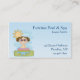 Tarjeta de visita de la piscina con la niña que juega en piscina en fondo azul. Conveniente para las ventas y servicio de la piscina, lecciones de la nadada de los niños, piscinas de la comunidad y centros turísticos.