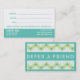 Tarjeta de visita de la remisión de la optometría. Tarjeta de visita de encargo de la remisión con una promoción de la remisión para recompensar a sus clientes para referir a sus amigos. El diseño tiene un modelo y un esquema de color geométricos modernos. Éntreme en contacto con por favor para los colores adicionales. Grande para comercializar su oficina de la optometría y aumentar su lista del cliente. Entre en su propia promoción, negaciones e información de compañía. Perfeccione para un optometrista, un oftalmólogo, un oculista, o los vidrios del ojo y una tienda del contacto.