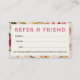 Tarjeta de visita de la remisión del salón con el estampado de flores y el esquema de color limpio. Tarjeta de visita de encargo de la remisión con una promoción de la remisión para recompensar a sus clientes para referir a sus amigos. Grande para comercializar su salón o estilista y aumentar su lista del cliente. Entre en su propia promoción, negaciones e información de compañía. Perfeccione para un salón, un peluquero, un estilista, un salón de belleza, un beautician, o un salón de mani y del pedicure.