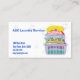 La tarjeta de visita para el servicio de lavadero, la lavandería, la economía doméstica, la cesta de lavadero de las características del diseño del etc. llenados dobló el lavadero. La burbuja de jabón flotante acentúa repeticiones en la parte de atrás de card.created con el by© http://www.delightful-doodles.com/ de los gráficos