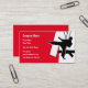 Tarjeta de visita de los artes marciales en rojo, negro, y blanco incluyendo un traje de la correa negra y un estudiante de artes marciales en una actitud de la acción. Diseñado para cualquier escuela de artes marciales, la autodefensa clasifica pero no limitado al Taekwondo, al karate, al judo, o al fu del kung.
