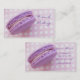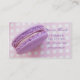 Una tarjeta de visita bonita con una foto de un macaron francés púrpura delicado en un fondo rosado del lunar. Perfeccione para las panaderías, los chefs de repostería o cualquier persona que hacen y venden las galletas francesas del macaron.