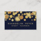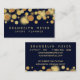 Características del este diseño de moda elegantes modernas un modelo de punto del bokeh del oro con un fondo de los azules marinos. Personalice esta tarjeta de visita con su propia información sobre frente y la parte posterior. Estas tarjetas trabajan bien para los planificadores de eventos así como los artistas creativos tales como diseñadores gráficos. Éstos son también grandes para los medios y el diseño web digitales.