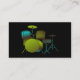 Un verde azulado, un marrón y gren el esquema linear de un sistema del tambor en un fondo negro adorna el frente de esta tarjeta de visita del tamaño estándar con las líneas para completar su información personal. En la parte posterior es un tambor llenado fijado con los mismos colores. Clásico y simple, una gran opción para musican. Modifique totalmente los colores de fondo, el tamaño de imágenes y el texto para requisitos particulares a sus necesidades.