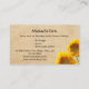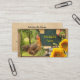 Tarjeta de negocio agrícola con un pollo en una granja con girasoles en tela. Hermoso para una granja de pollo o para cualquiera que venda productos en el mercado de los granjeros.