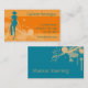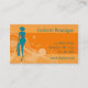Tarjeta de visita de moda en azul anaranjado y verde azulado con los elementos elegantes de la silueta y del grunge de la mujer. Conveniente para la moda o los boutiques la industria del modelado, las tiendas y.