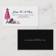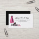 Tarjeta con el ilustracion de la moda de un vestido de cóctel en un maniquí de la forma del vestido de la costurera y zapatos a juego del tacón alto. Diseñado para la reparación de la ropa, la alteración y los servicios de la reparación.