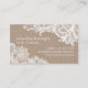 Esta elegante tarjeta de visita le presentará su negocio de forma profesional. La decoración es de encaje blanco sobre un fondo de textura burpomposo vintage. Esta tarjeta se puede usar para un planificador de eventos, terapeuta, asesor financiero, tutor o cualquier otro profesional. Diseño elegante y elegante para una moda y una mujer de negocios de moda.