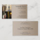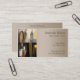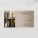 Una tarjeta de visita con botellas de vino y barriles de vino. Este diseño es para bodegas y viñedos, así como para los que venden bebidas enológicas.