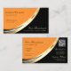 Tarjeta De Visita Decoración dorada negra y Naranja con código QR mo