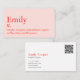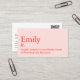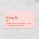 diseño de tarjetas de visita profesional y moderno personalizado con un estilo de diseño de definición de diccionario. Con campos de plantilla para el nombre, el nombre/título de la empresa, la información de contacto y el código QR (borrar si lo prefiere). Minimalista texto rojo moderno sobre fondo rosado. Cambiar los colores de fondo, mover y cambiar el tamaño de los elementos con la herramienta de personalización. ©Marisu Valencia