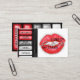 Diseño de la tarjeta de visita del artista de maquillaje hecho en los colores rojos, negros, grises y blancos que ofrecen una paleta de la sombra de ojos y labios rojos brillantes sobre el fondo blanco. Esta tarjeta elegante del perfil es perfecta para los beauticians, los cosmetologists, los salones de belleza del pelo y del maquillaje y otras profesiones similares. Si usted necesita alguna ayuda con este diseño, no dude en entrarme en contacto con.