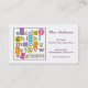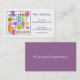 Gran tarjeta de visita para cualquier profesor, profesor particular, proveedor de la guardería, nin@era o profesional elemental o preescolar del cuidado de niños. El ilustracion original del alfabeto y de los números hace una declaración maravillosa en sombras de la diversión del trullo, del naranja, de la verde lima, del rosa, del naranja y de la púrpura. Modifique el texto para requisitos particulares en el frente y de nuevo a juego sus necesidades.