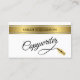 Las características del este del copywriter de visita diseño de la tarjeta una banda del efecto del oro/una cinta en una tarjeta blanca con escritura hermosa del "copywriter" y la semilla de una tinta de lujo encierran. Esta tarjeta de visita es conveniente para un copywriter independiente o un negocio copywriting. El efecto del oro y la escritura negra crean un diseño elegante y elegante simple y proyectan una imagen de un profesional experimentado.