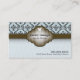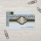 Los diseños del PAM ©2011. Represente su odontología de la familia o práctica del orthodontist con esta tarjeta de visita con clase y profesional, dental. Esta tarjeta ofrece una silueta blanca del diente en un sello marrón y blanco envejecido vintage con una cinta surcada. El fondo se comprende de un papel azul del damasco del vintage al lado de un azul claro con el fondo transparente de la pendiente del damasco.