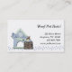 Tarjeta de visita para las perreras del mascota, huéspedes o casa de perro de las características del diseño de instalaciones de la adopción del mascota y perro que se sientan en las maletas. Frontera azul de la parte inferior de la impresión de la pata.