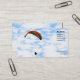 Tarjeta de visita elegante con un ala flexible que se eleva en las nubes. Malibu admitido foto en un punto local del paragliding.