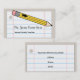 Una tarjeta de visita del profesor que ofrece un ilustracion de un lápiz amarillo en una hoja del papel alineado del cuaderno. Personalice la información sobre frente y la parte posterior.