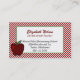 Gran tarjeta de visita de mirada de los profesores, con un fondo a cuadros rojo oscuro y blanco, en el frente de la tarjeta. Un área de texto blanca, afilada con un grabado en relieve que mira la frontera verde, tiene una manzana roja jugosa el adornar de la esquina izquierda inferior. La parte posterior de la tarjeta se diseña como tarjeta de la cita. Todo el texto es adaptable decir lo que usted quiere. Plantilla agradable de la tarjeta de visita para los profesores y los profesores particulares.