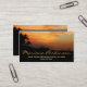 la puesta del sol en las zonas tropicales amarillas vara cerca del océano tranquilo. Palmas negras y diseño para las tarjetas de visita del viaje y del turismo.