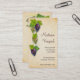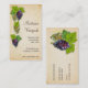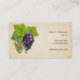 Una vid con cuatro racimos de uvas de vino alinea a lo largo del lado izquierdo de esta tarjeta de visita. La vid arrastra detrás de las uvas contra un fondo del pergamino. Una gran tarjeta para un viñedo local o un sommelier. Disponible con hacer juego productos.