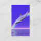 Una tarjeta de visita azul con un delfín sumergido en el océano, siguiendo un arcoiris.