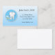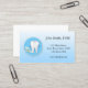 Una tarjeta de visita para los dentistas o los higienistas dentales con el diente y el cepillo de dientes en fondo azul de la pendiente.