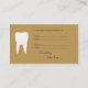 Businescard elegante con un logotipo blanco del dientes en fondo del vintage del carboard. En la parte trasera usted encontrará una sección agradable para sus citas pacientes. Vea nuestra tienda para los regalos y la ropa de la práctica dental para el dentista, el higienista dental y el ayudante de dentista. ¡Encuentre hilarantemente las tazas, los delantales y las camisetas divertidos del humor del dentista! ¡Más, también llevamos los imanes y los botones dentales del humor para llevar, para exhibir o para dar lejos!
